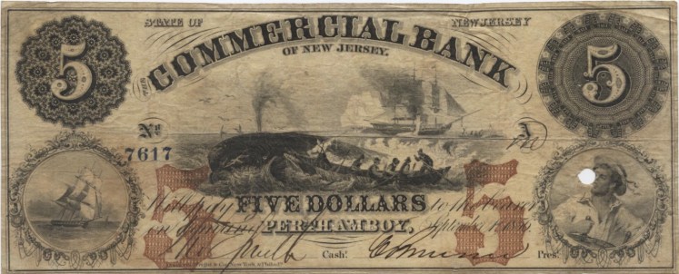 Though nominally statewide in scope the Commercial Bank was designed to advance the interests of Perth Amboy, especially the town’s maritime fortunes. The state legislature incorporated the bank with the peculiar requirement that between one-fifth and one-third of its stock be devoted to “the fishing for whales, seals, and sea-fish, in the Atlantic and Pacific Oceans, and for no other purpose whatsoever.”2 Banks at the time often engaged in speculative ventures, usually internal improvements like turnpikes, canals, ferries and railroads that were capital intensive. But in the charter’s title the functions of a bank read as an afterthought: “An Act to incorporate a Company for carrying on the Whale and Seal Fisheries from the port of Perth-Amboy, and for Banking purposes.”3