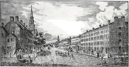 Most fabled of the four, the northeast corner was home to “The Hounds and Horn,” a legendary inn whose painted sign evoked the hunting parties popular with the gentry, especially those visiting from the South.7 Washington Irving dined there, penning a cryptic tribute to the proprietor and his mysterious servant: “Archy Gifford and his man Caliban–jolly fat fellows–a knowing traveller always judges of every thing by the inn-keepers and waiters.”8 Coaches made regular stops at Gifford’s tavern, assignations took place and business deals were struck: New Jersey’s first bank elected its founding board of directors here in 1804, naming Whitehead’s father its first cashier.9