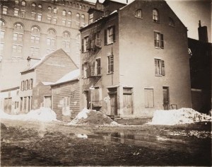 It’s small wonder that he decided to locate in one of Gotham’s more bucolic enclaves. The distinctive layout of the ninth ward, encompassing the long-settled village called Greenwich, had withstood the gridiron pattern imposed on most of Manhattan. Few of its old streets surrendered their names for numbers. While fully accessible to the city below, Greenwich Village retained a measure of identity and tranquility, and the Hoboken ferry at the foot of Christopher Street assured easy passage to even more serene settings across the Hudson.