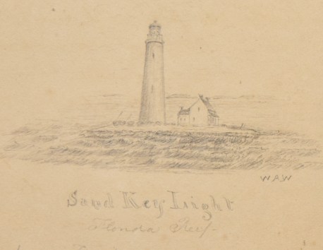 [2] Thomas W. Taylor, Florida’s territorial lighthouses, 1821-1845: a legacy of concern for the mariner (Allandale, Fla. 1995) 132. Whitehead appended to his sketch the following note: “Ten Miles from Key West the nearest inhabited land. The Light is kept by Mrs Rachel [sic] R Flaherty who with her sister are the only inhabitants of the Island (which is not more than 400 yds in circumference) with the exception of a seaman who has charge of a boat and catches fish for a livelihood who occasionally visits them.” Memorandums of peregrinations by land & water, Volume 2, facing page 87, in the collections of the Key West Art & Historical Society. See also William R. Hackley, Diary, in Goulding Collection, Special Collections, Florida State University Libraries, Tallahassee, MSS 0-128 (hereafter Hackley, Diary), entry of 5 June 1831. Barbara Mabrity was for a time Rebecca Flaherty’s counterpart on Key West: named by Whitehead keeper of the Key West light on her husband’s death in 1832, she served in that capacity for a remarkable thirty-two years.
