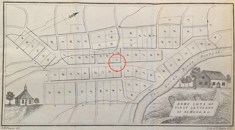Congar’s scrutiny of ancient documents generated a “map of the Town as first laid out,” of which a large version “with colors and figures designating the owners of the different lots” was shown at the bicentennial commemoration of Newark’s founding in 1866.17