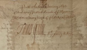 Then there was Cornbury’s response to the charge, leveled at his ally Peter Sonmans, of having absconded with the records of the East Jersey board: the governor rejoined that “The Records are not carried out of the Eastern Division unless it be those which Tho. Gordon has imbezled….”24